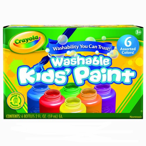 - Set includes six different colors of washable kid's paint in 2 oz. plastic bottles