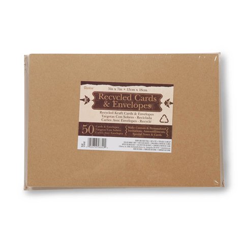 - Pack of 50 Recycled Kraft Cards and 50 Kraft Envelopes.